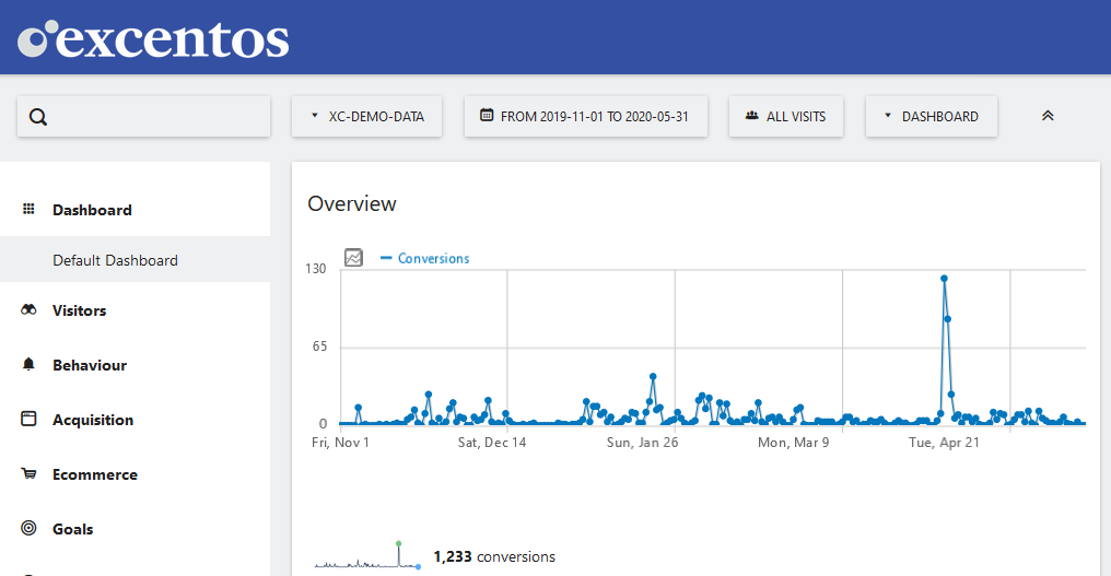If you enter the analytics, the Dashboard view is presented with a summary of most important figures and charts: