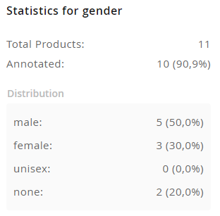 The annotation statistics gives you an overview of the distribution of already annotated products.